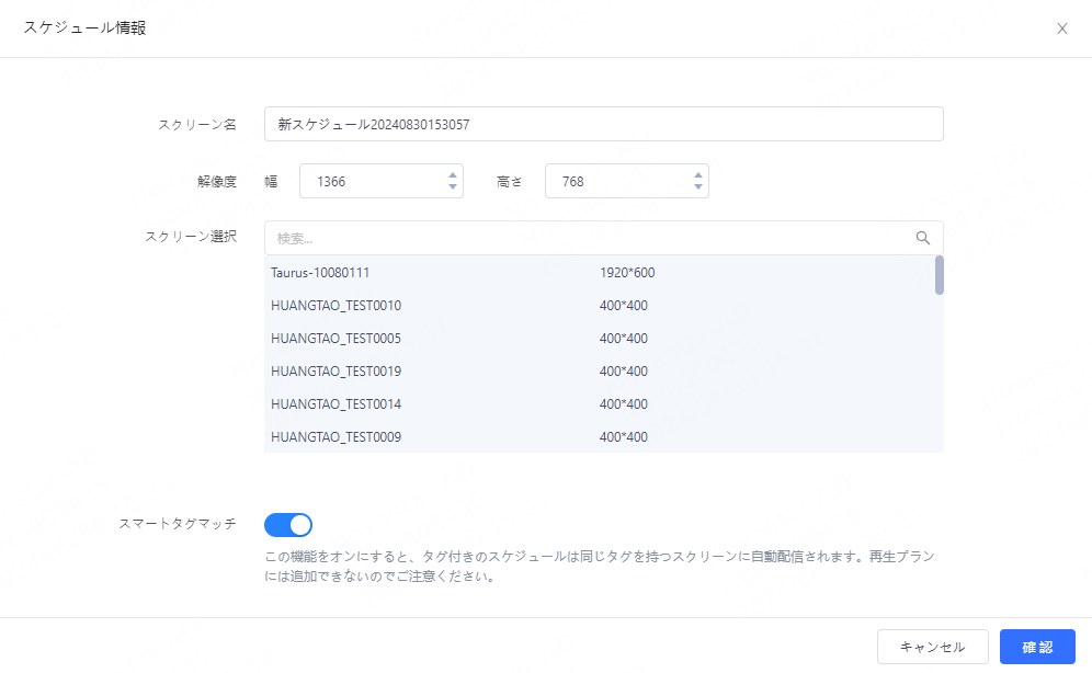 • 「スマートタグマッチ」をオンにすると、タグ付きのスケジュールは同じタグを持つスクリーンに自動配信され、再生プランには追加できません。